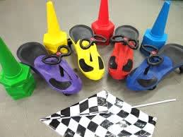 The cars come in a range of eye catching orders and are designed to help stimulate the user's concentration skills and upper body strength as their legs will be underneath the wheel and its the idea of the game to keep them off their floor and just use their strength to move the cars.
