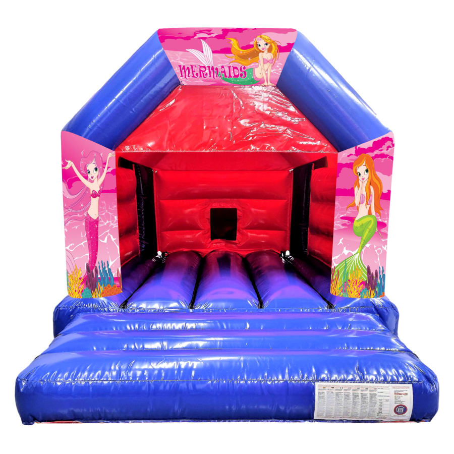 Aim Of The Game: Embark on a magical journey on the "12x15 Children's Bouncy Castle Hire - Mermaids Red & Blue":