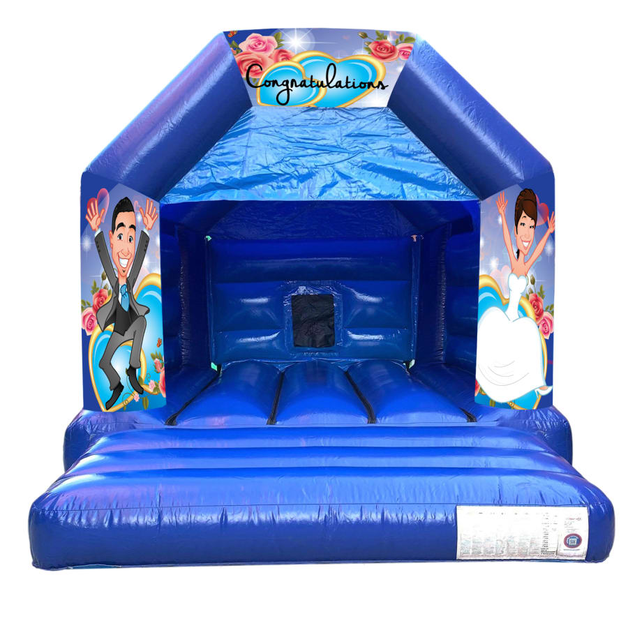 The12x15 Wedding Bouncy Castle hire is the perfect theme for any themed party, venue or occasion. The Wedding castle is a great size at only 9ft 6" which makes the hire ideal for both indoors and outdoor hire and will keep both adults and children entertained for hours, leaving you to be able to sit back and watch them bounce, play, laugh, have fun and enjoy their day. The Wedding artwork is very realistic and fantastic quality, ensuring the perfcet party idea.