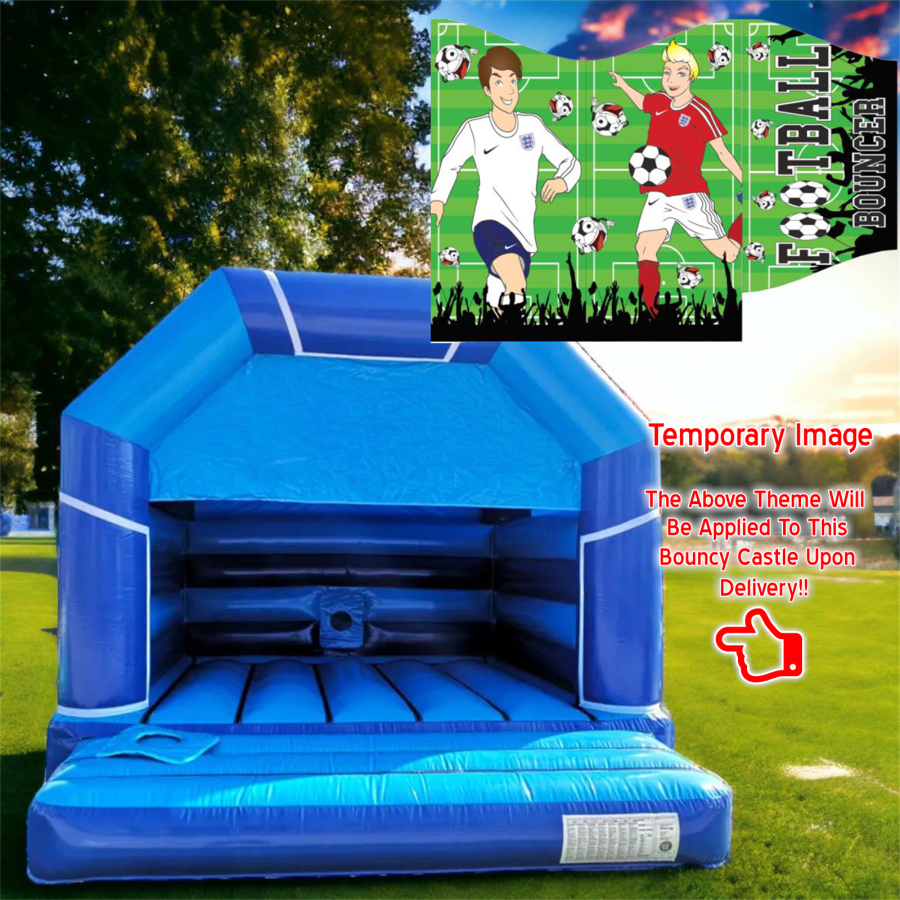 Blue & Light Blue Adult Bouncy Castle Hire - Football Theme For Hire in Leeds, Wakefield, Bradford, Huddersfield, Halifax, York, Sheffield & Nationwide