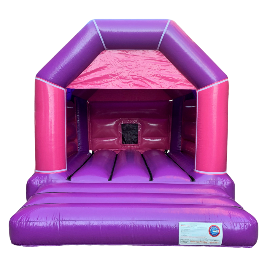 Introducing our "12x15 Children's Bouncy Castle Hire - Plain Pink & Purple," a simple yet vibrant addition to any event. This elegantly designed bouncy castle, with its eye-catching combination of pink and purple, offers a cheerful and inviting play area for children of all ages. Perfect for a variety of occasions, from birthday parties and family gatherings to school events and community festivals, it provides a backdrop of fun and excitement. Available for hire across Yorkshire, including the lively cities of Leeds and Sheffield, and also nationwide for larger events. Pair this bouncy castle with our selection of extras, such as soft play sets, diddi cars, and space hoppers, or add a playful touch with games like Giant Connect4 and Giant Jenga.