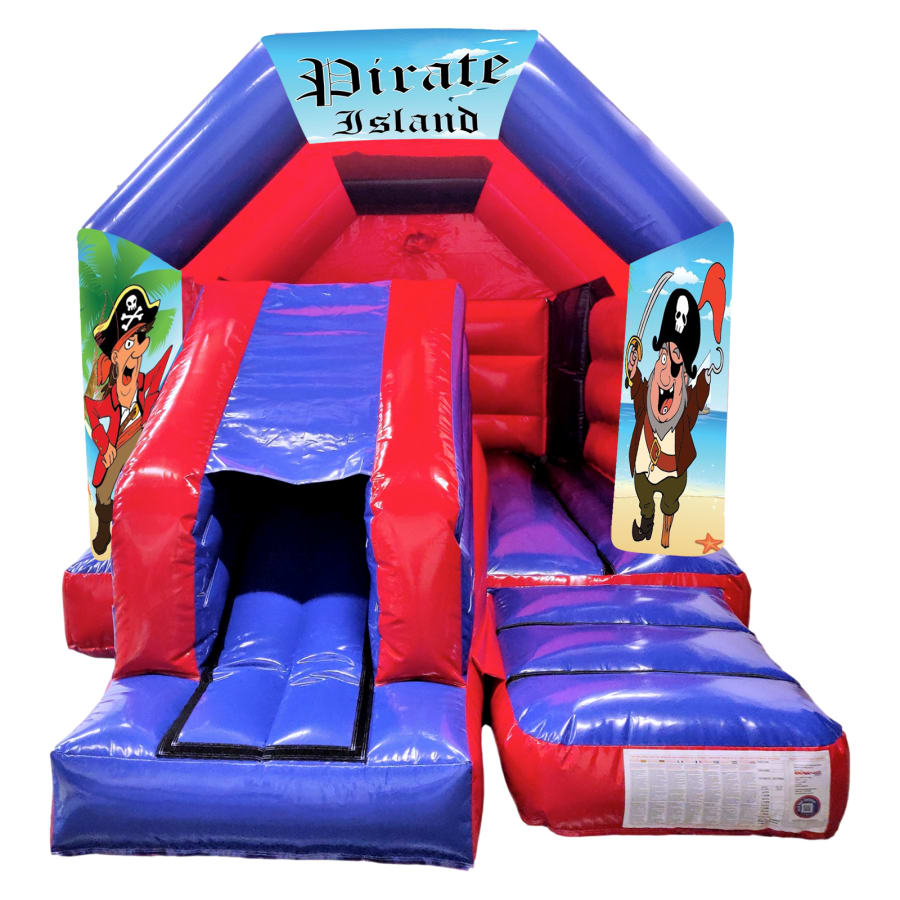 The 12ft x 16ft Pirate themed Bouncy castle with slide hire is a fantastic new addition to our fleet. The Pirate bouncy castle with slide combines 2 of the most popular items we own in one extraordinary inflatable where space is at a premium. The bouncy castle with slide combo is the perfect combination slide for any party, venue or occasion and is ideal for all age groups. This brightly coloured piece of equipment provides the perfect bouncing area to bounce along with friends, whilst the slide provides entertainment for the rest of the guests at the same time and certainly won't break the bank.