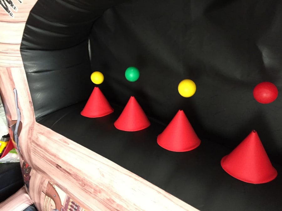 The aim of the game is to go head to head against your opponents in this modern twist of a cork gun range. The participants take it in turns to shoot out in sets of 2. When the countdown is over, both players must fire fire fire as many balls as they can within the allotted timescale. The winner will be the player who can knock the most hovering balls off the target cones as possible but be careful, the balls are quite small and this really is a test of skill, patience, persistence and accuracy. Have you got the aim of a true wildwest gun slinger! Other games include most knockdowns in 1 minute, Quickest full knockdown time and more.