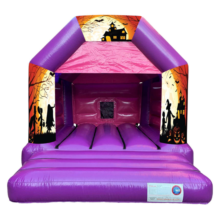 - 1 x 12x15 Children's Bouncy Castle Hire - Halloween Silhouette Pink & Purple