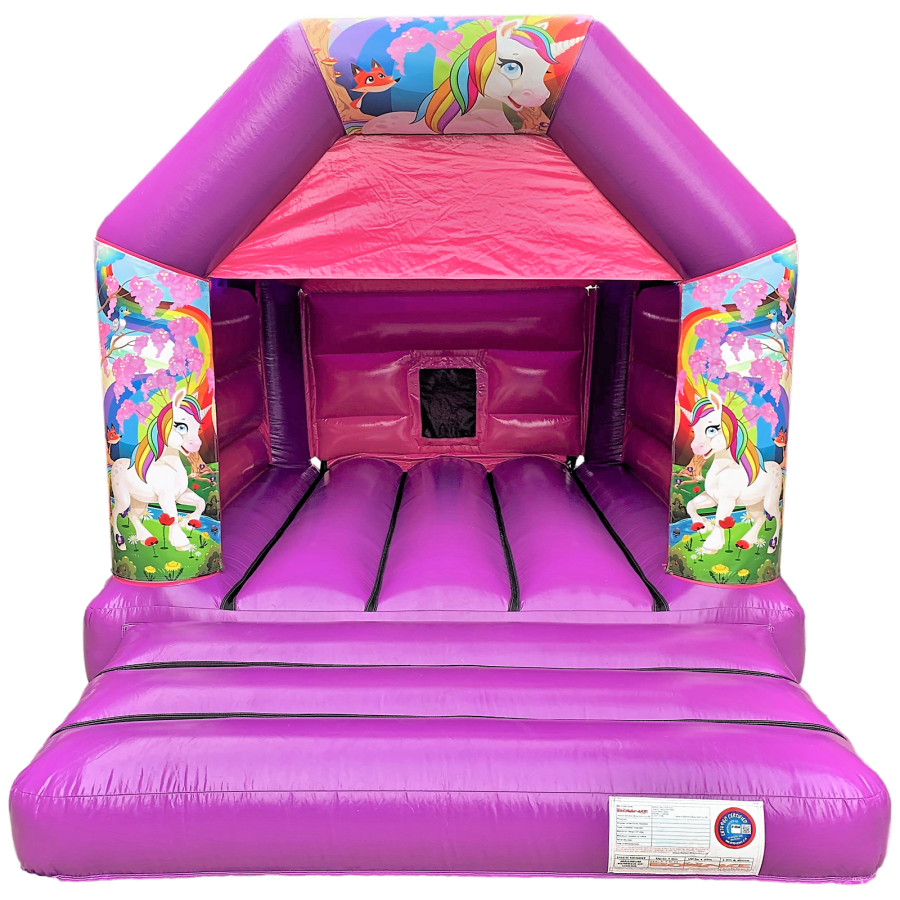 - 1 x 12x15 Children's Bouncy Castle Hire - Unicorn Forest Pink & Purple