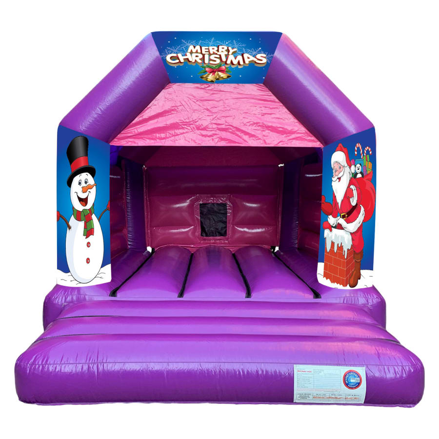 - 1 x 12x15 Children's Bouncy Castle Hire - Christmas Santa & The Snowman Pink & Purple