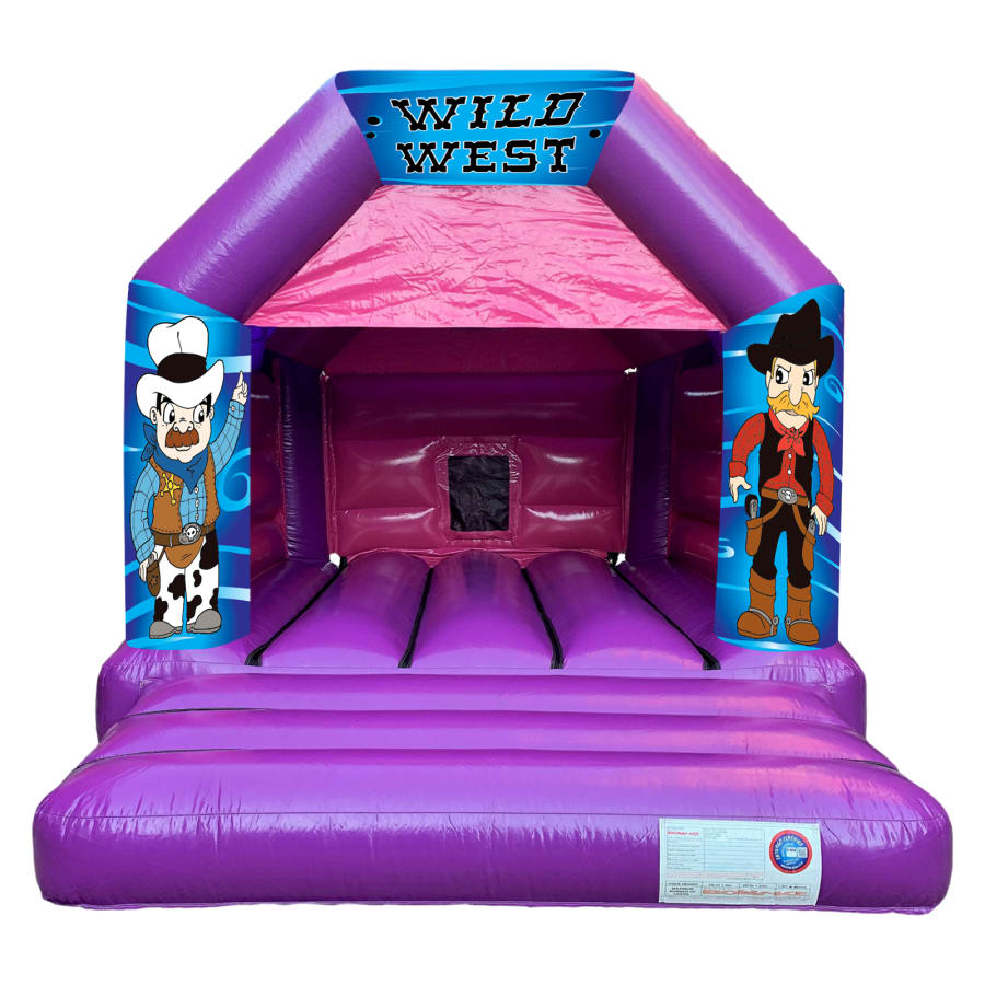 Embark on a frontier adventure with our "12x15 Children's Bouncy Castle Hire - Wild West Pink & Purple." This lively bouncy castle, featuring vibrant shades of pink and purple, is perfect for young cowboys and cowgirls ready to explore the Old West. With playful western-themed decorations, it's a hit for cowboy-themed birthday parties, school events, or any gathering where adventure and imagination reign. Available for hire throughout Yorkshire, from the bustling city of Sheffield to the historic town of York, and also nationwide for larger Wild West-inspired events. Enhance the cowboy experience with our range of extras, including soft play sets, diddi cars, and space hoppers, or add a competitive edge with games like Giant Connect4 and Giant Jenga.