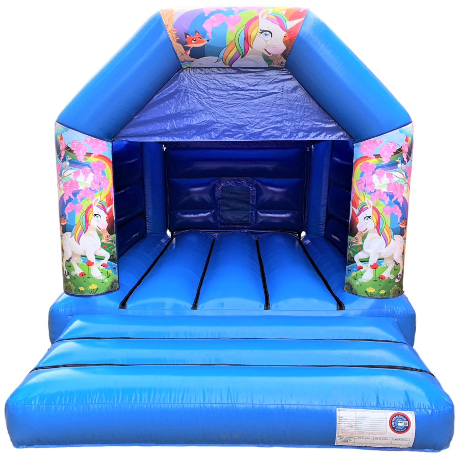Unicorn Forest Theme Blue & Light Childrens Bouncy Castle Blue
