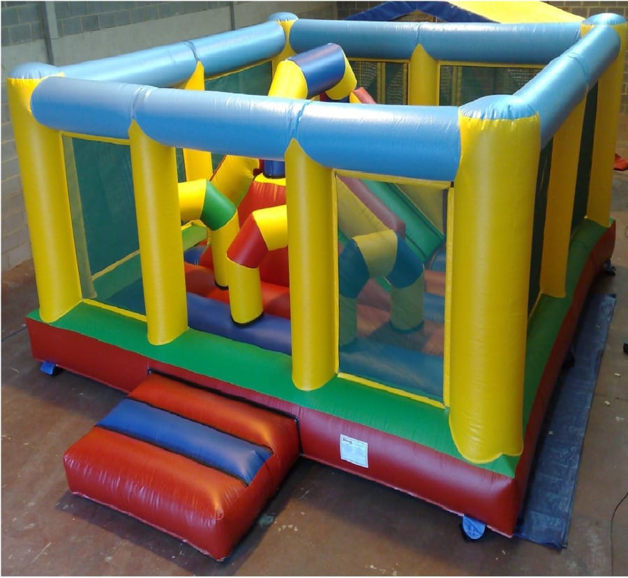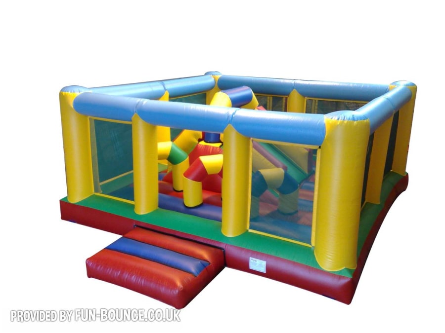 The Multiplay activity bouncy castle is suitable for all age groups including adults and can be hired on its own or as part of a package of similar themed item challenging inflatable games such as the Loopy ladder, Slides, Climbing wall hire, obstacle course hire, soft play hire, Base jump hire, Bungee run hire, wrecking ball and ultimate duel hire, along with a whole host of other entertainment.