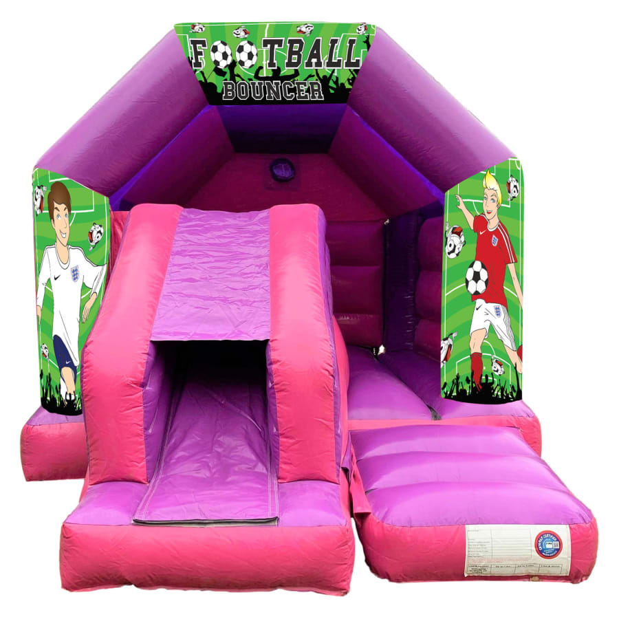 Football Theme Pink & Purple Bouncy Castle With Slide