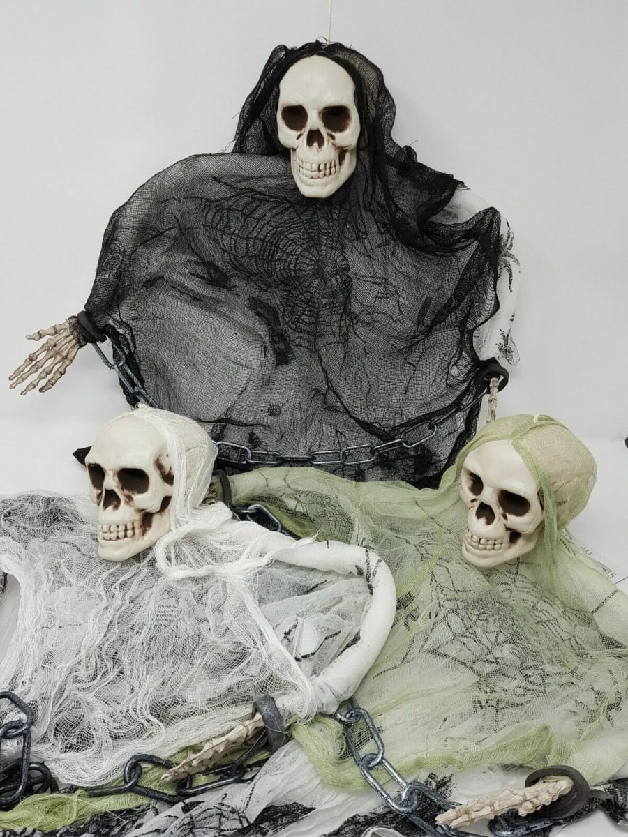 Hanging Chained Skeletons Halloween Prop#Available as a bulk party prop (see below)
