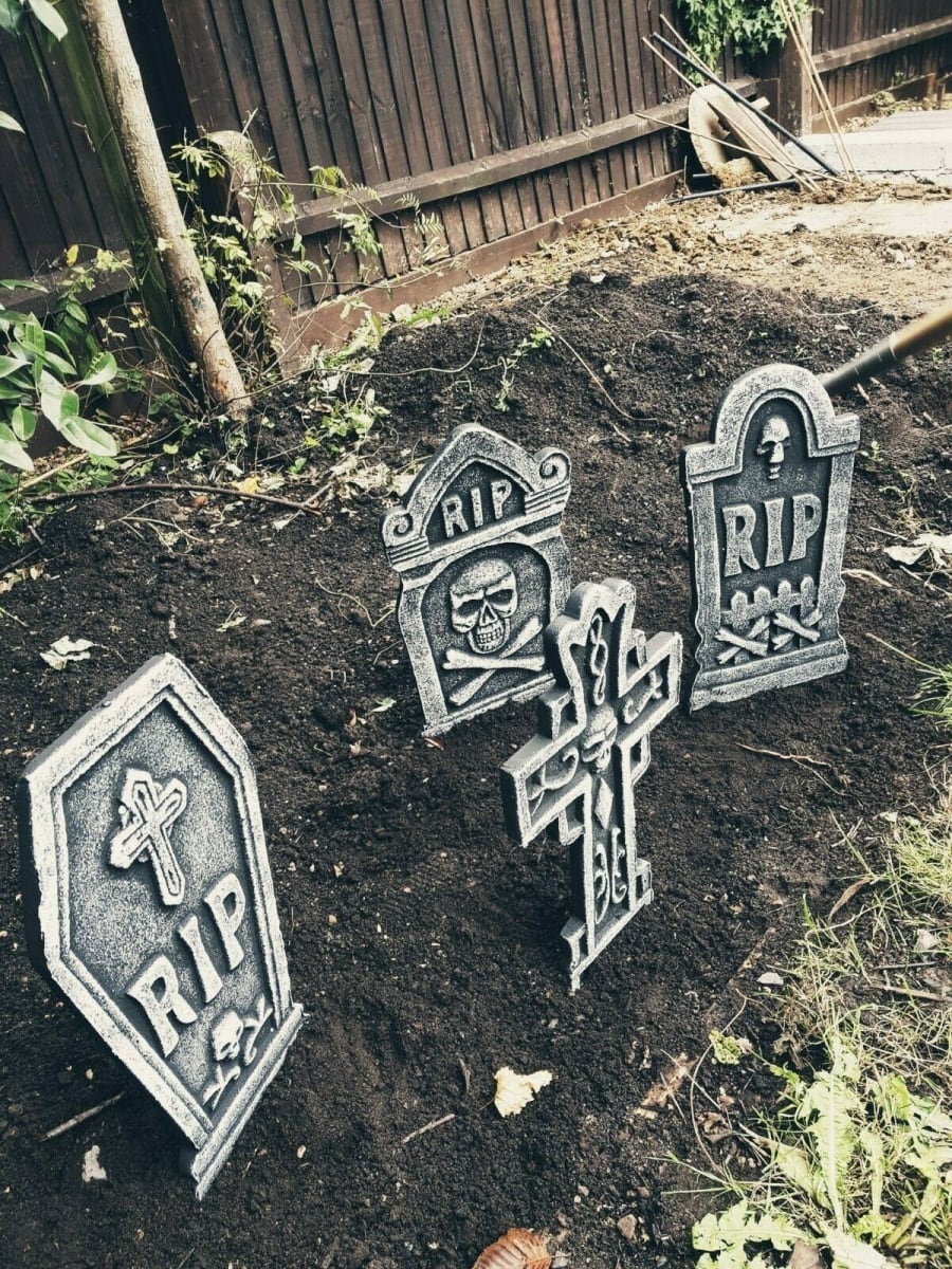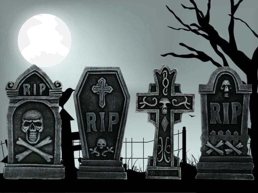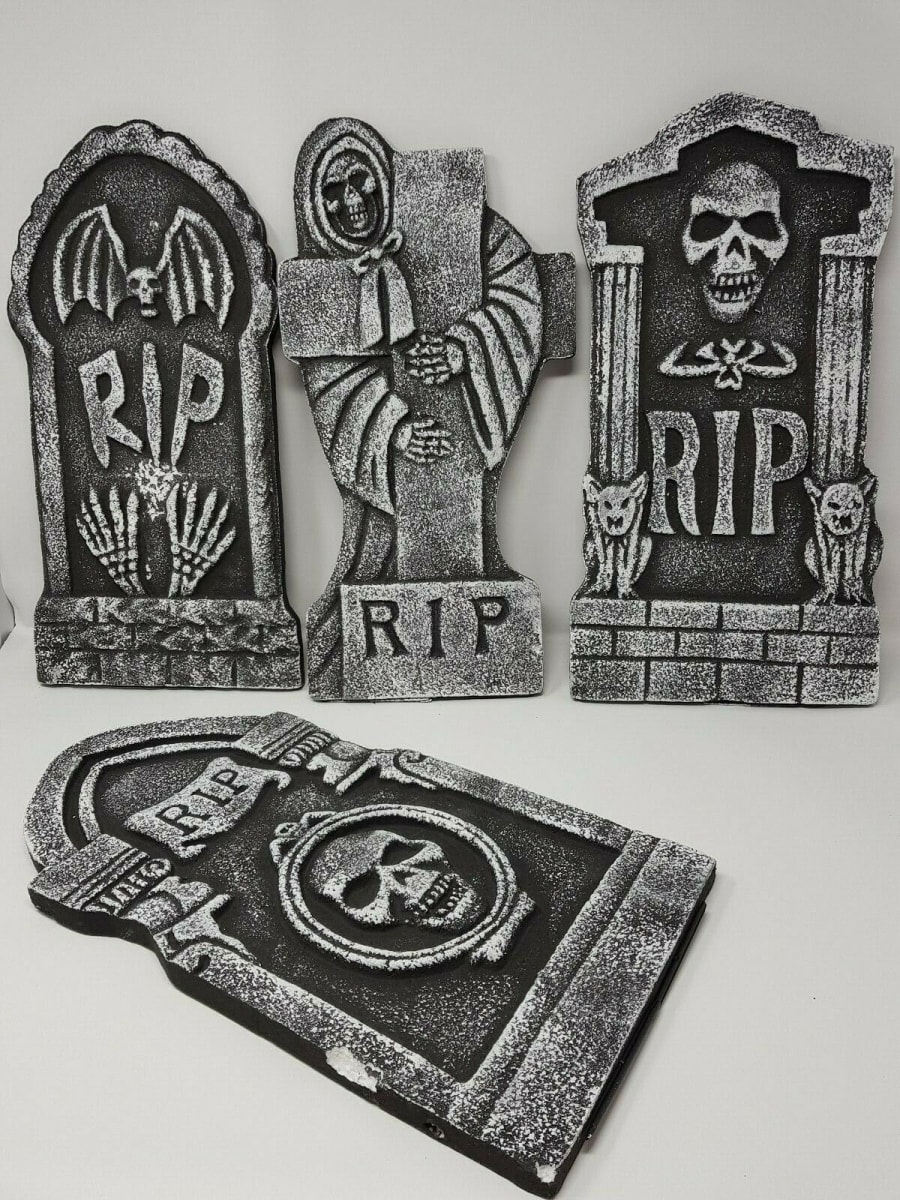 4 Tombstones Gravestone Outdoor Halloween Prop