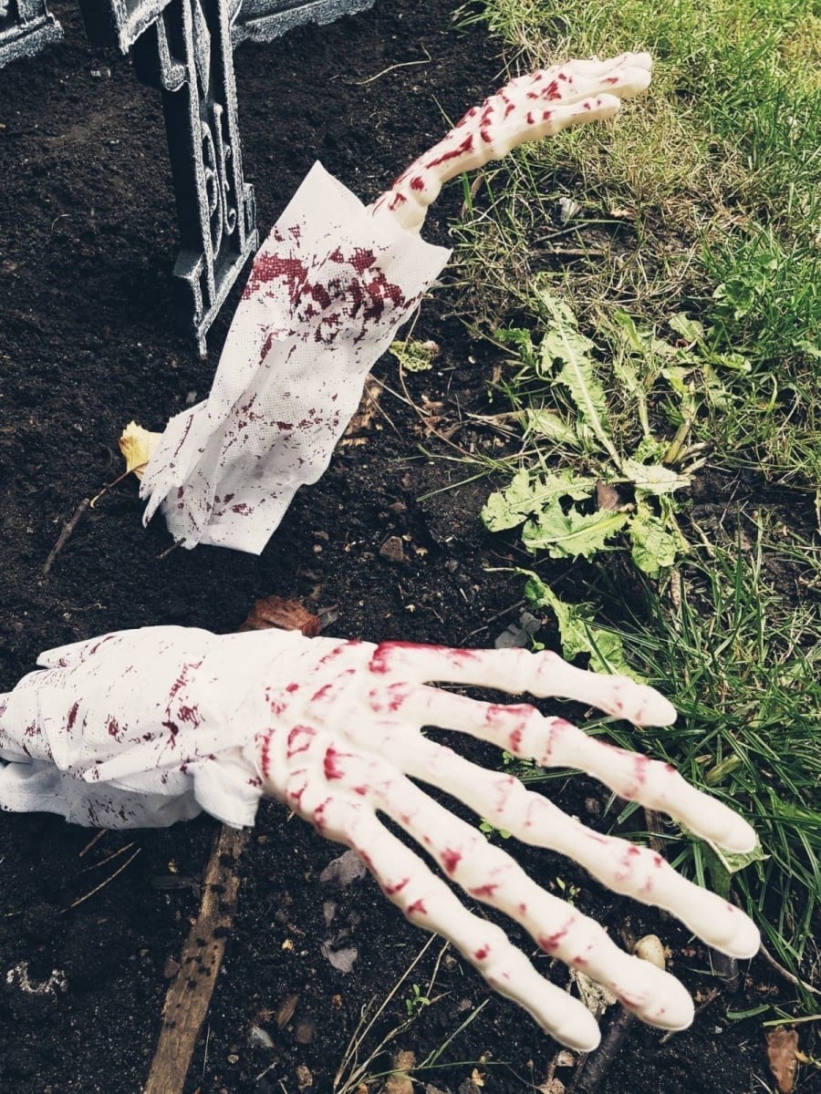 Bloody Skeleton Arm Halloween Prop#Available as a bulk party prop (see details below)