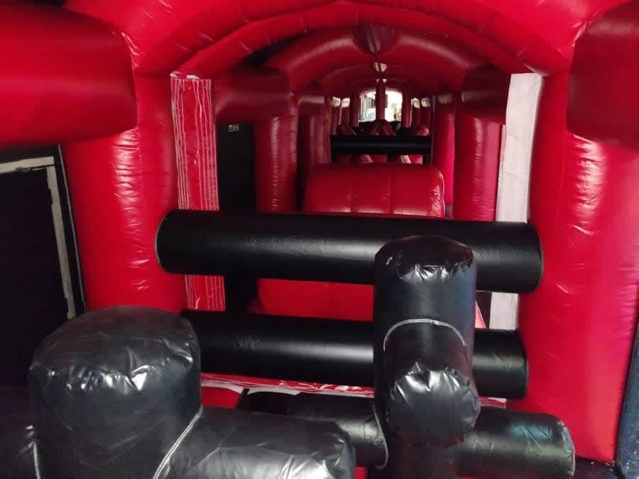 Our 125ft, 5 piece assault course is just fantastic! It's a multi setup monster with the ability to constantly expand beyond your wildest dreams. The pieces are joined together using extra strong safety velcro so the units can be used indoors making site access a doddle. The whopping great obstacle course incorporates an up and over slide, biff and bash, and bouncing area, hurdles, whackers, biff and bash posts, mini humps, obstacle humps, crawl through tunnels and much much more! Dare you go bigger!!!