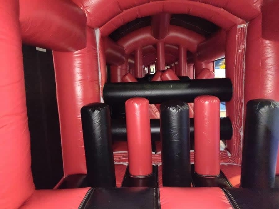 Make your day with this modern obstacle section. The inflatable obstacle course offers a safe entrance way with full theming, followed by a random series of obstacles that changed between every hire. Some of these obstacles include a series of biff and bash pillars, cool chill out area in the middle, XXX Hurdles, triangle hurdles, slippery mangles, up and over umps, swinging wrecking ball obstacles, barrel climbs, hanging wobblers, stepping stones, crazy curves, steep ladder climb and a crazy slide out of the end. The obstacle course is the perfect choice for any children or adults event.