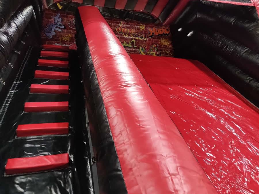 The inflatable slide for hire offers features such as firm step holds, Extra handrails and a netted roof to stop over adventurous children from climbing out ensuring maximum safety. The inflatable slide hire is perfect for entertaining a birthday party of around 25 children at any one time (not all at once of course) and is a really good slide choice is your planning a small school gala or summer fete where all age ranges need to be catered for. We also have a matching range of BIG inflatables which can be found using the similar items link below or popping the word graffiti in our search bar at the top of the page.
