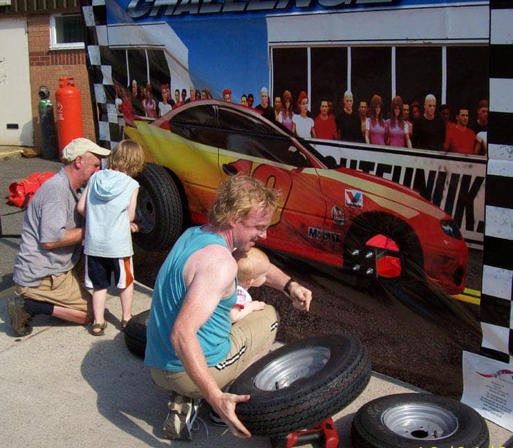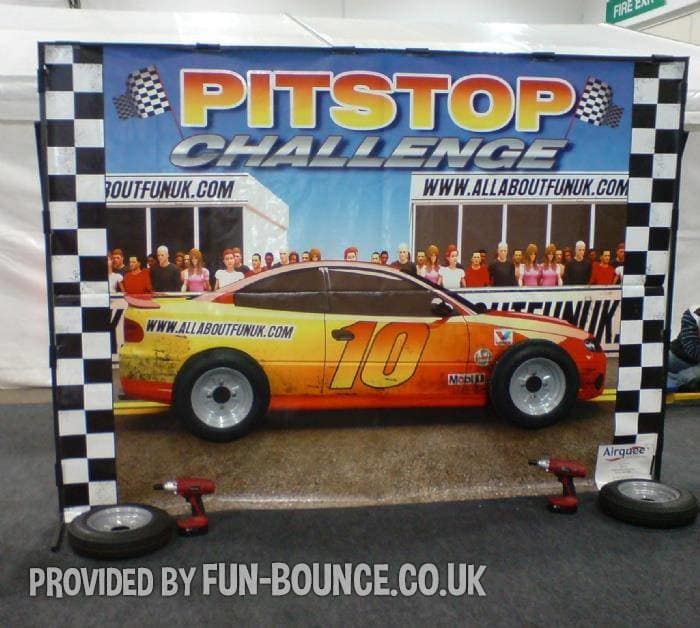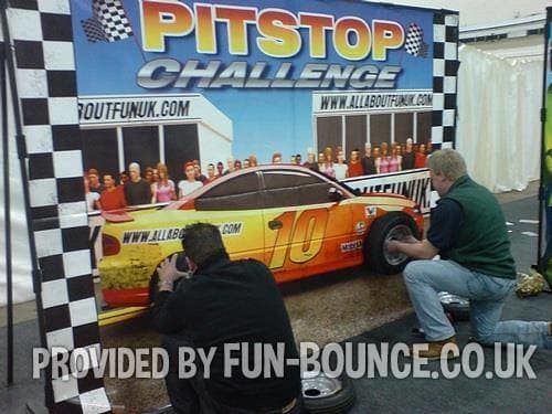 The pit stop challenge hire or pitstop challenge wheel change simulator is an ideal way to draw in additional visitors to your exhibition stand, school gala, pub, club, shopping centre or can be just as much fun at a private party event or birthday bash.