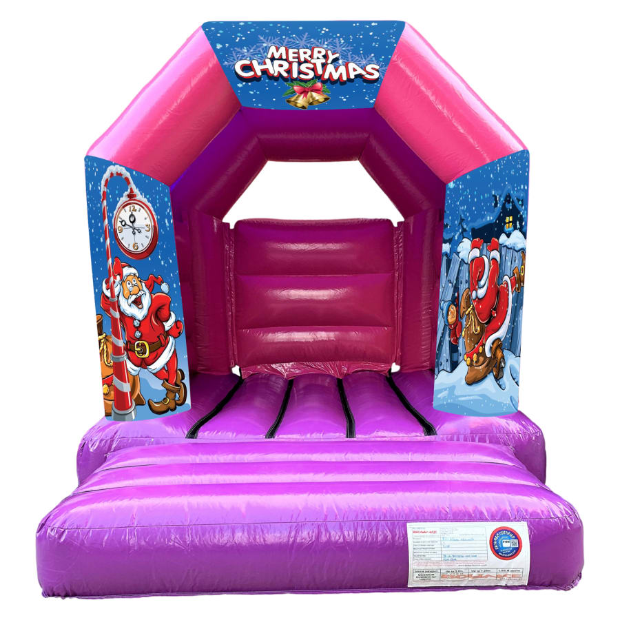 - 1 x Christmas - Santa & Clock Theme Toddler Bouncy Castle in Pink & Purple