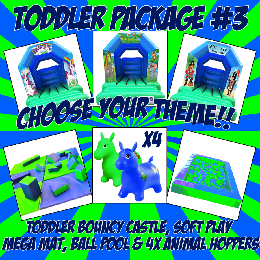 What do you provide with your Green & Blue Toddler Soft Play Party Package 3?