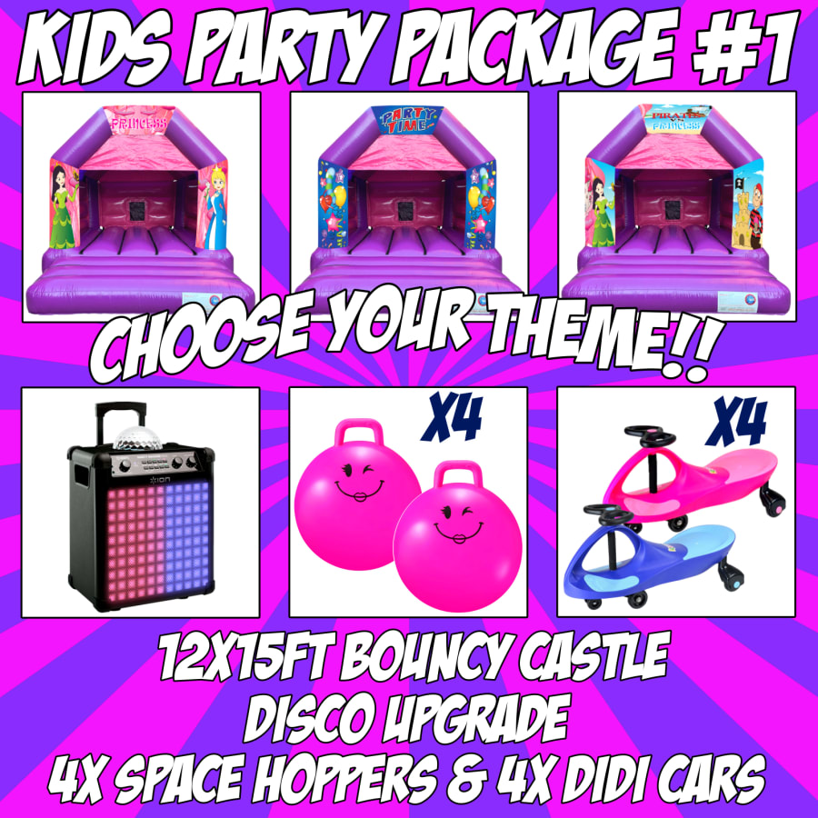 What do you provide with your Kids Pink & Purple Party Package 1?